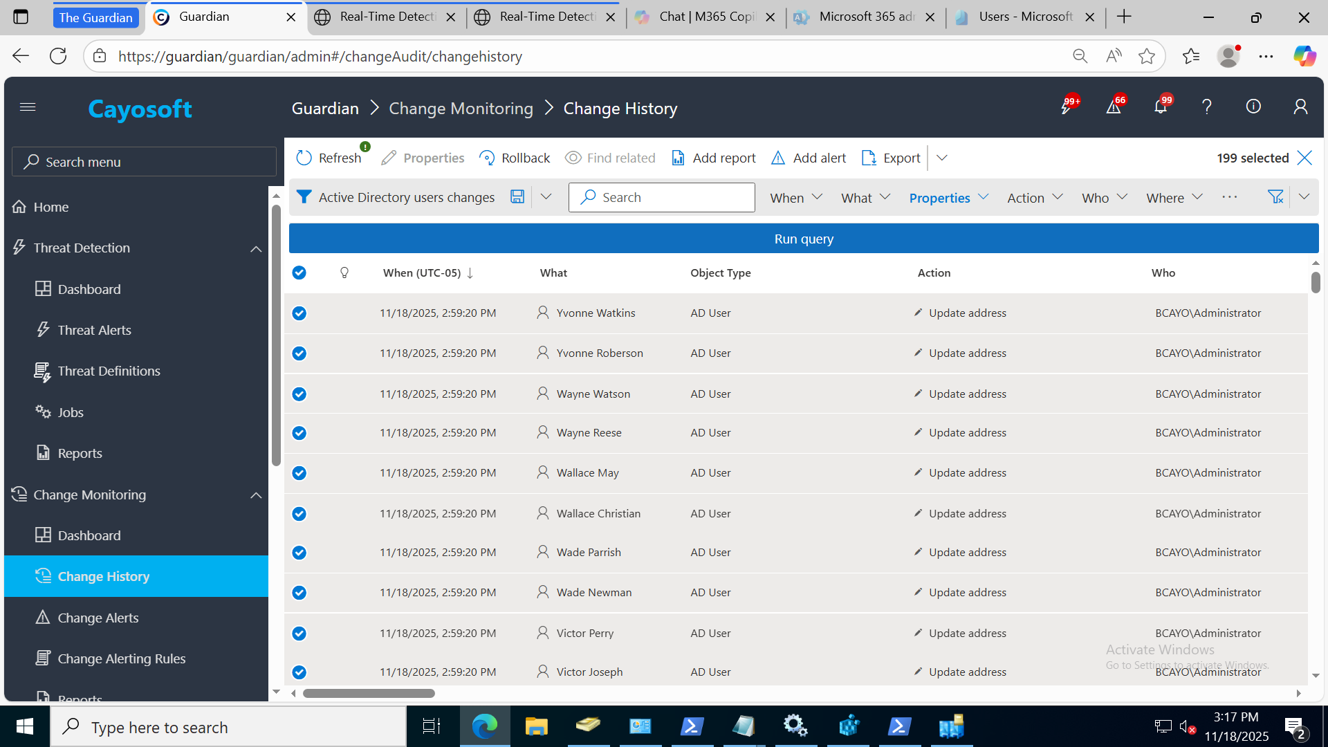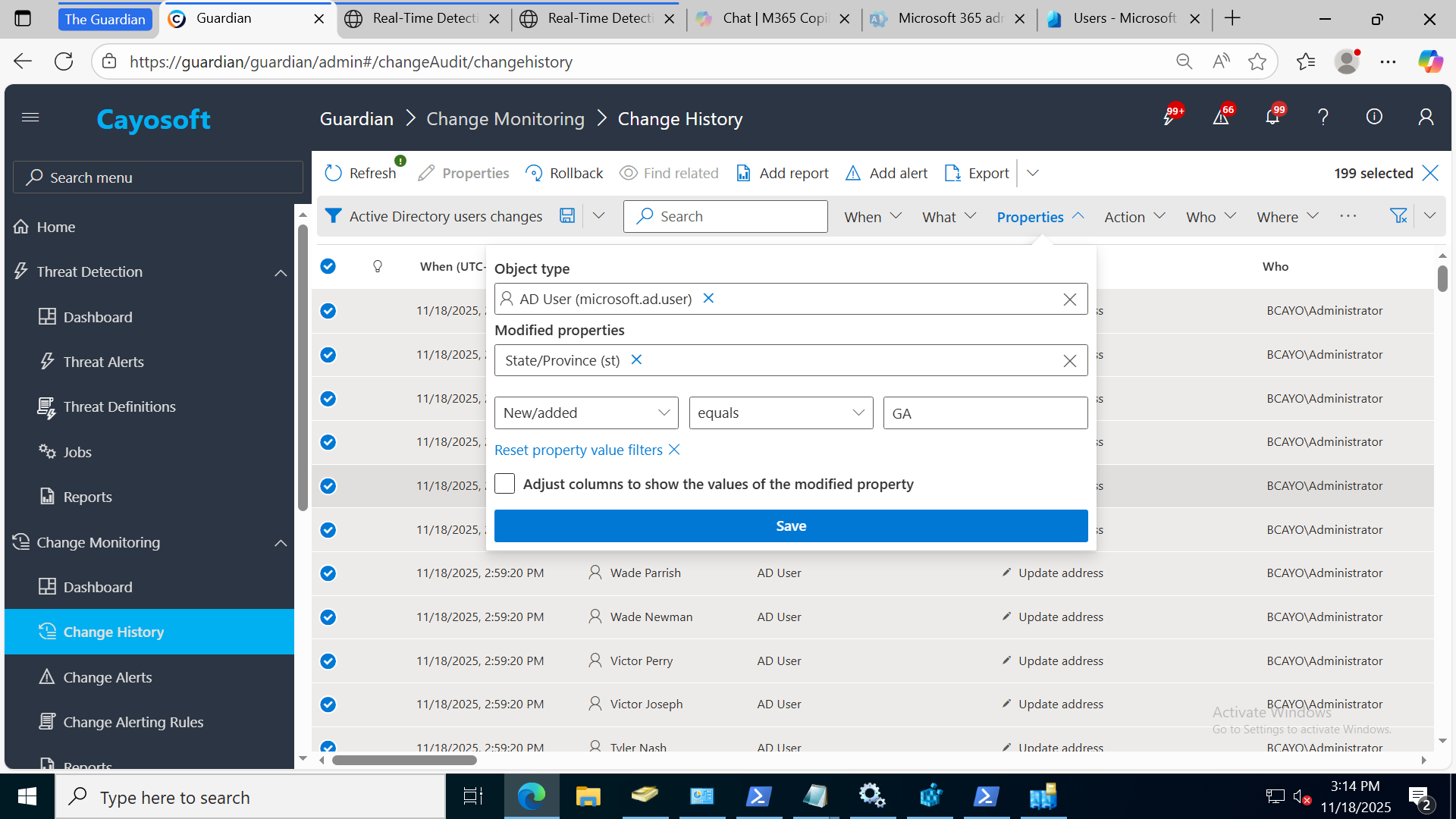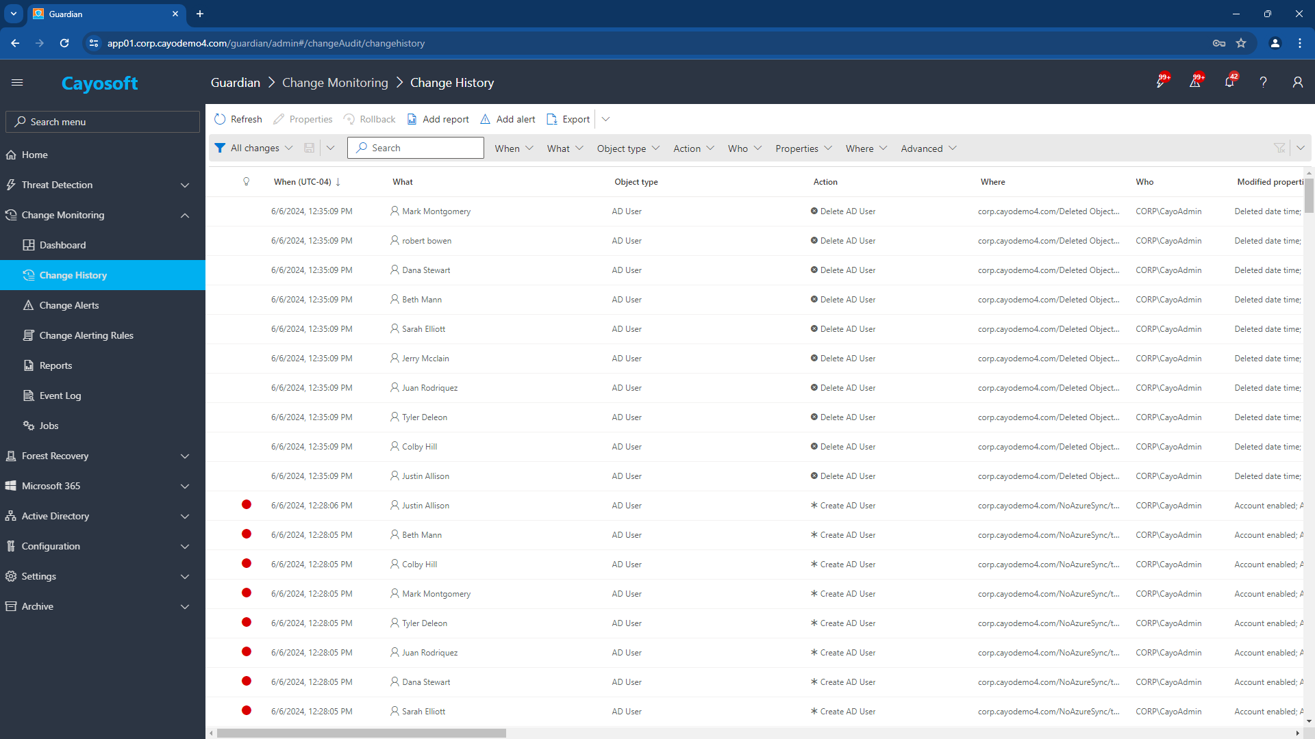Cayosoft Guardian’s Change History view