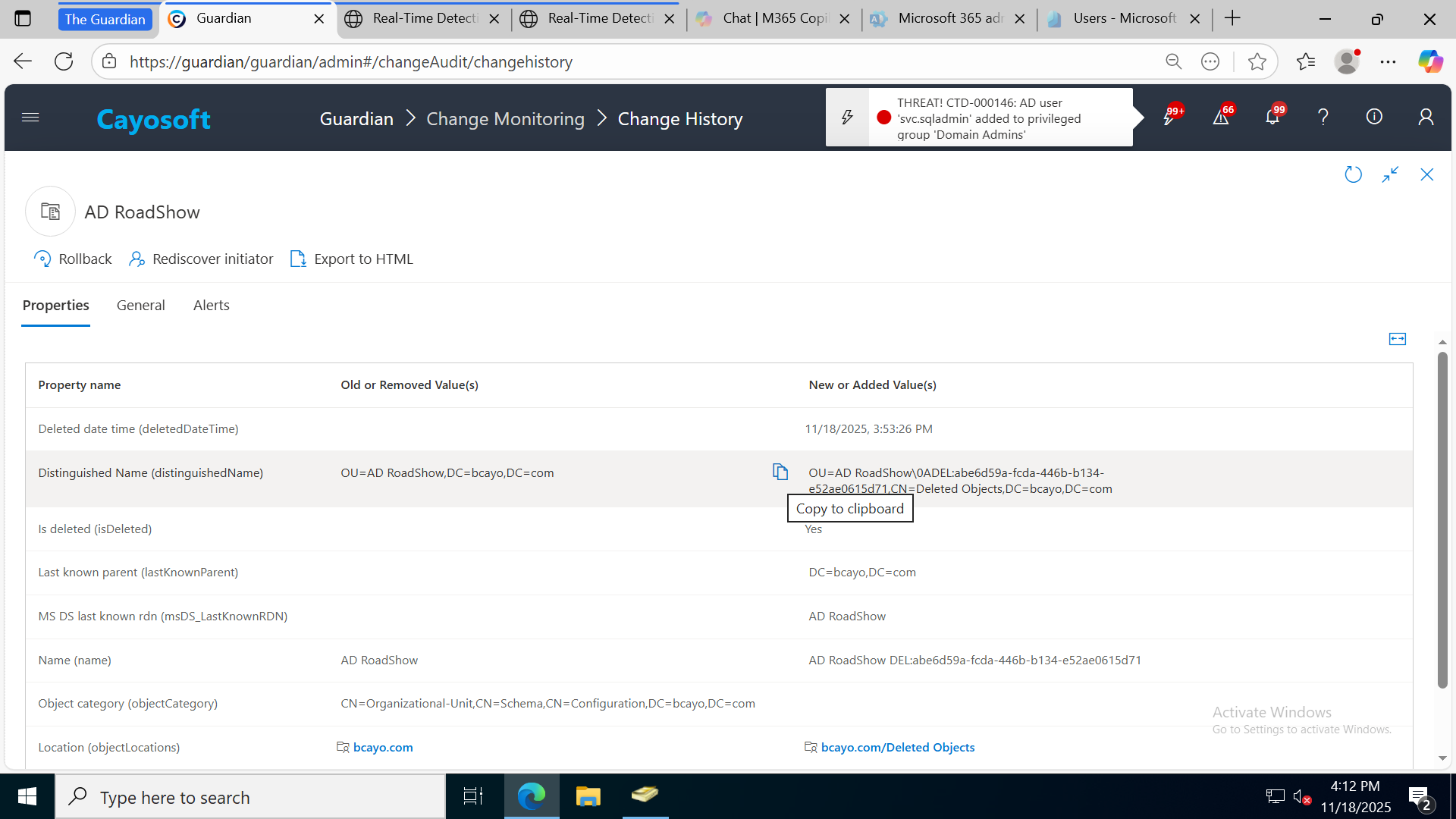 Cayosoft Protector provides continuous monitoring and real-time alerts across your entire Microsoft Identity stack
