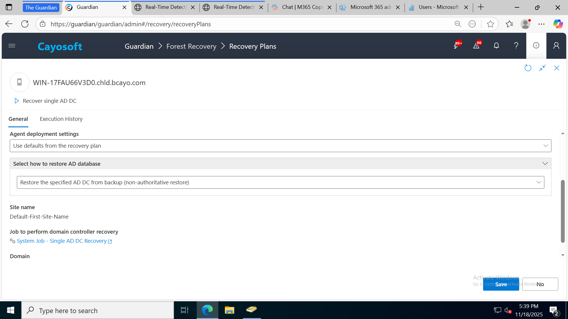 DR recovery plan steps in Cayosoft Guardian