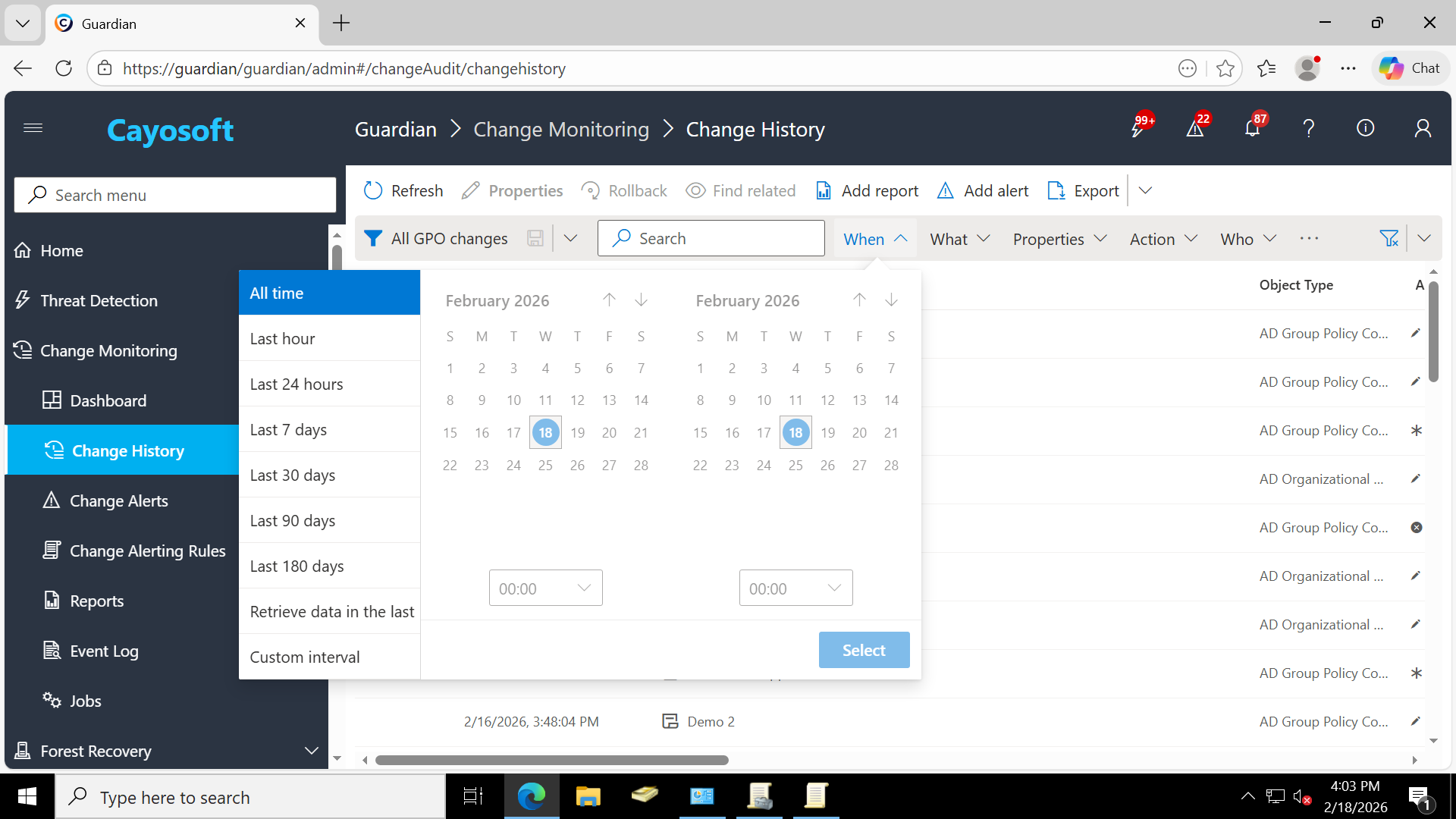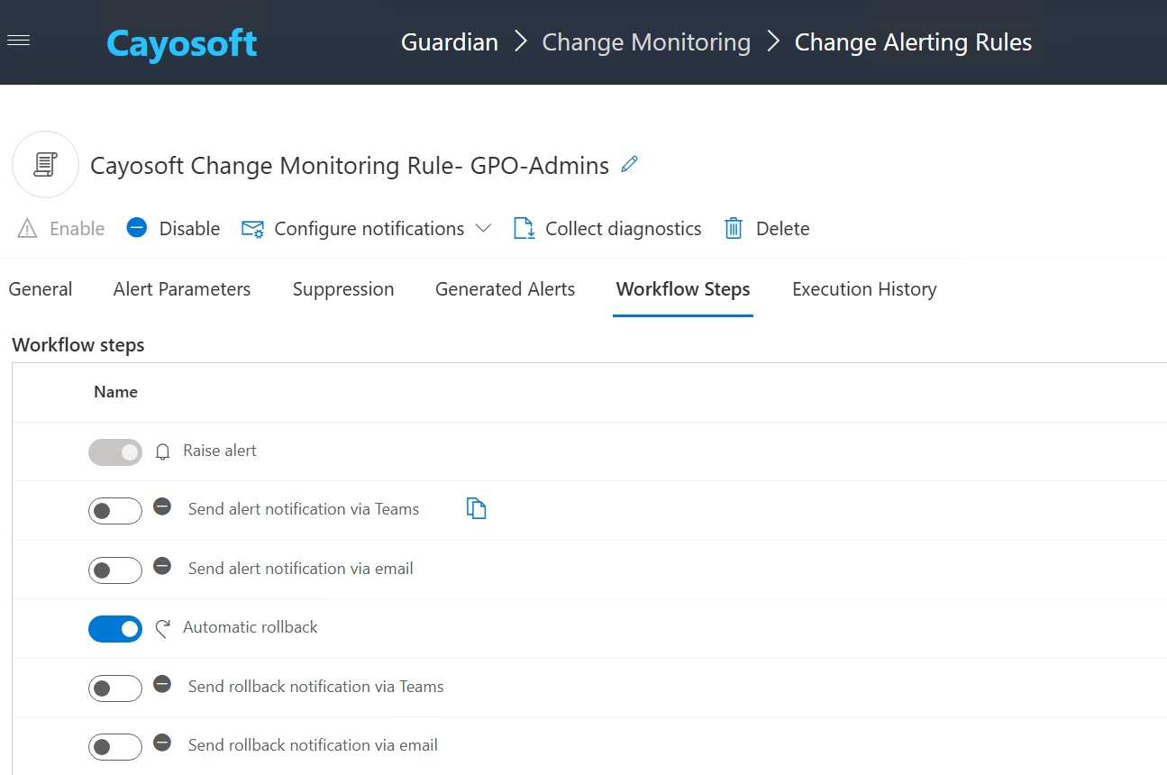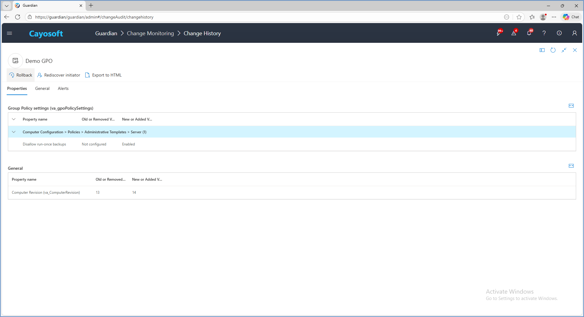 Group Policy change monitoring in Cayosoft Guardian