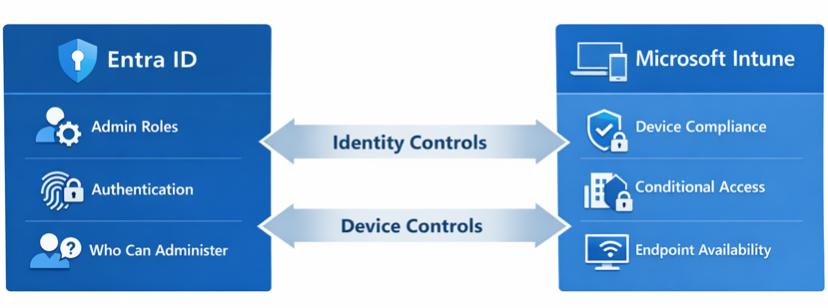 One account should not control everything. Separate identity administration from Intune administration to the reduce blast radius and prevent single-account dominance.