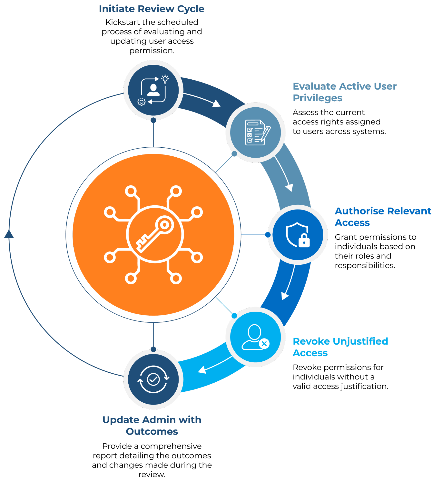 The identity lifecycle includes stages such as internal transfers, role changes, offboarding, and onboarding. A clearly defined identity lifecycle procedure guarantees that users are granted access suitable for their positions and responsibilities throughout their time with the company. It ensures precise and timely modifications to access rights through the lifecycle stages.