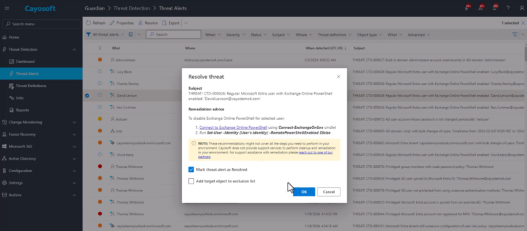 The Guardian Platform delivers continuous monitoring, real-time identity threat intelligence, and instant rollback of changes across Active Directory, Entra ID, Microsoft 365, Teams, and Intune. It also includes the patented instant standby Active Directory forest recovery environment for immediate cutover in a disaster.