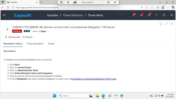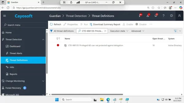 The Cayosoft Threat Directory gives detailed guidance on over 170+ threat signatures that Guardian Protector monitors and detects.