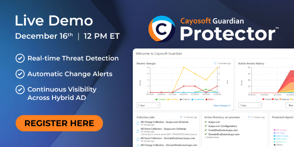 Join our 30-minute live demo and you’ll see how Cayosoft Guardian stops identity threats, tracks every change, and rolls back AD instantly, before issues become outages.