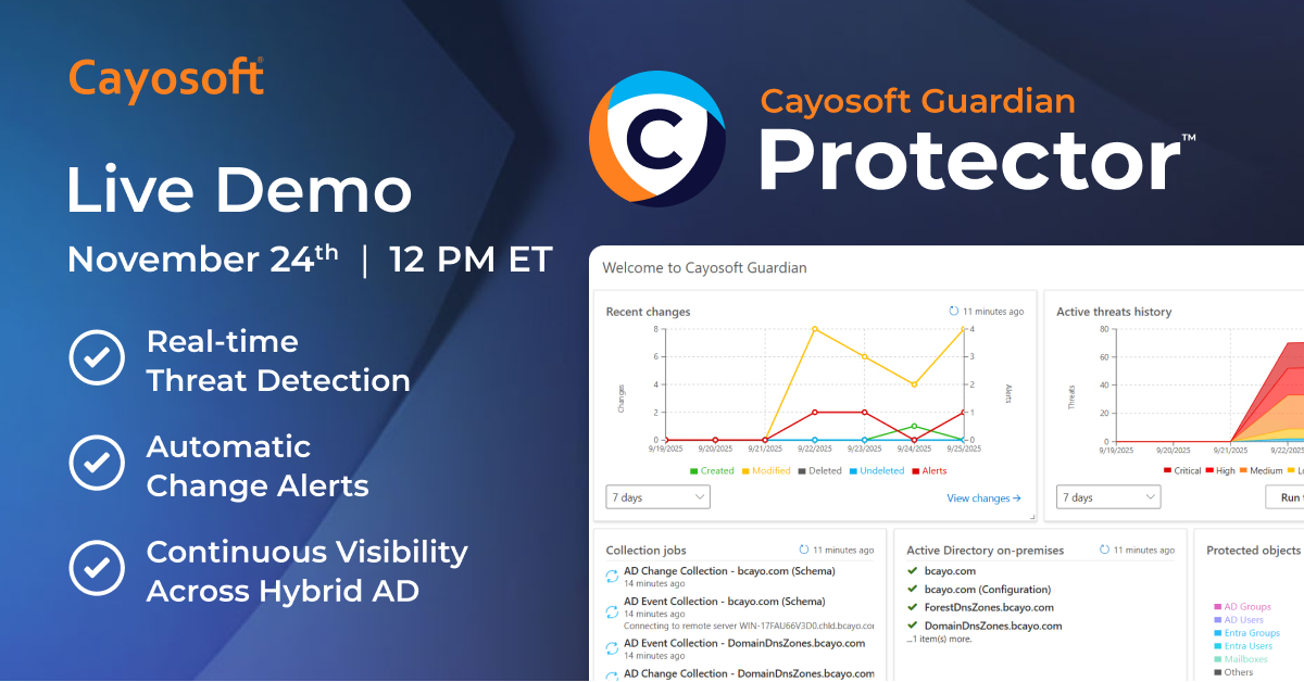 With Cayosoft Guardian Protector, you get free, real-time detection for Active Directory, Entra ID, Microsoft 365, and Intune.