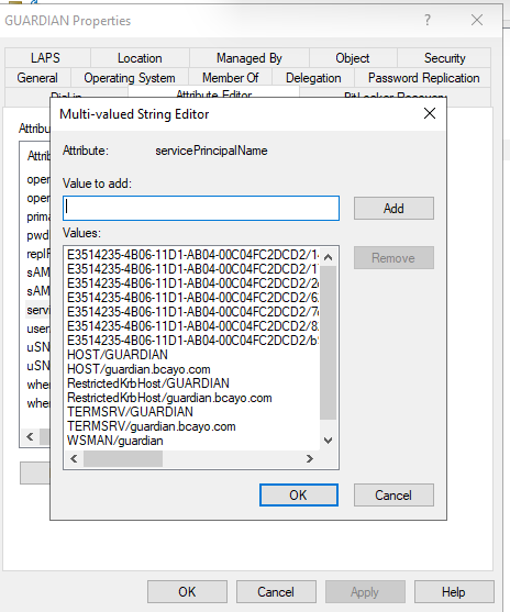9. ) In the Multi-valued String Editor dialog box, locate the SPN that you want to remove.