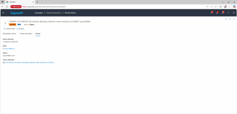 2.) Open All Alerts and search for CTD-000165 or AD domain allowing multicast name resolution (LLMNR).