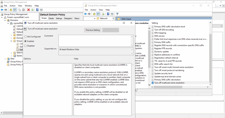 - ) Set Turn off Multicast Name Resolution to Enabled.