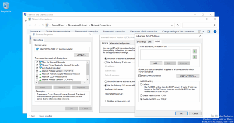 - ) Disable NetBIOS over TCP/IP on all network adapters: