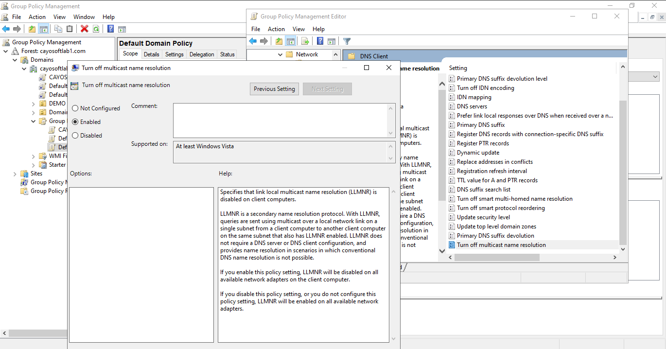Disabling LLMNR mitigates these risks by preventing unauthorized interception of name resolution requests. However, this change may impact legacy applications or older systems that rely on LLMNR or NetBIOS for network communication.