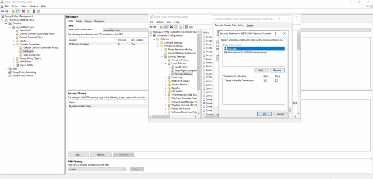 - ) Search for “Domain controller: Allow vulnerable Netlogon secure channel connections”.