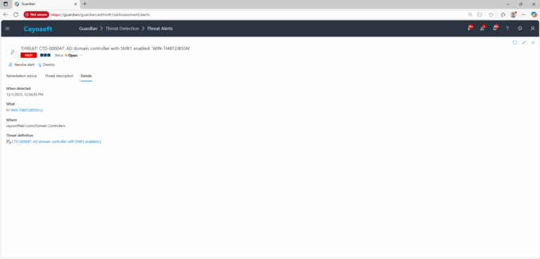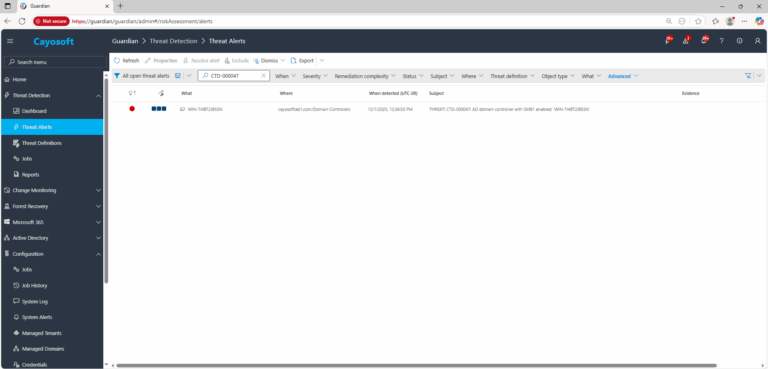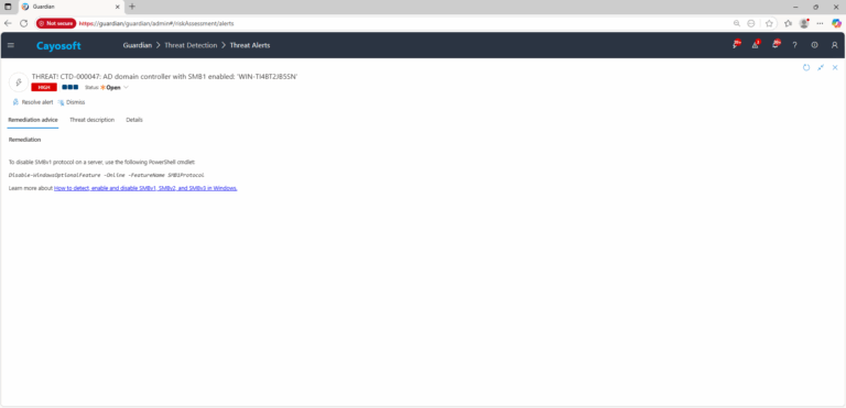 Cayosoft Guardian can proactively detect and alert on AD domain controller with SMB1 enabled. It continuously monitors Active Directory, Entra ID, Microsoft 365, and Intune for over 200 misconfigurations, providing early warning before attackers can exploit them.