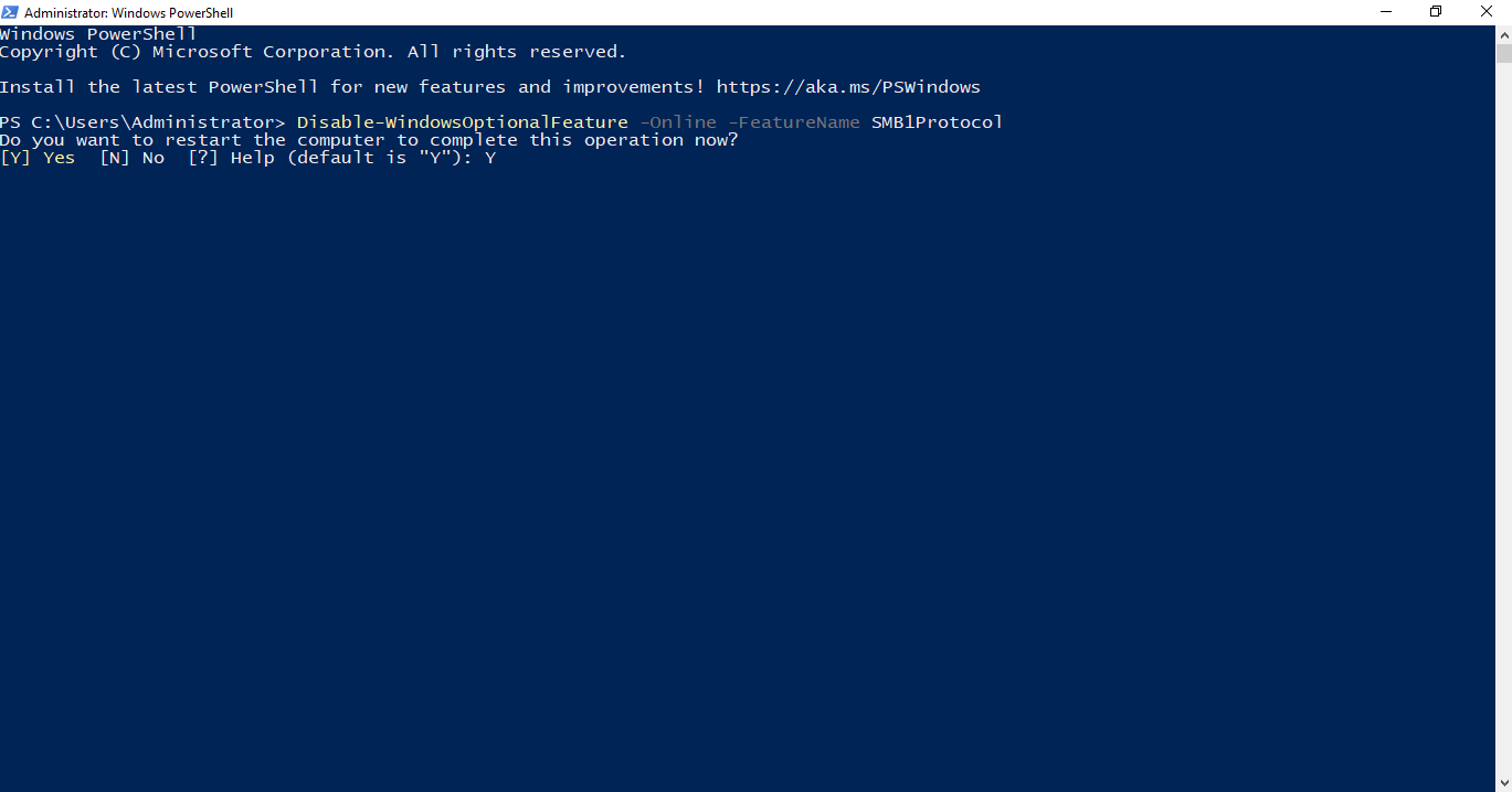 Disable-WindowsOptionalFeature -Online -FeatureName SMB1Protocol