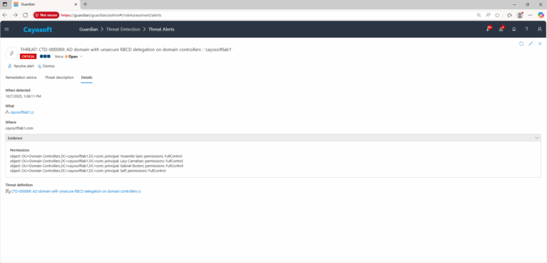 Cayosoft Guardian could have detected the unsecure delegation settings early, preventing the escalation.