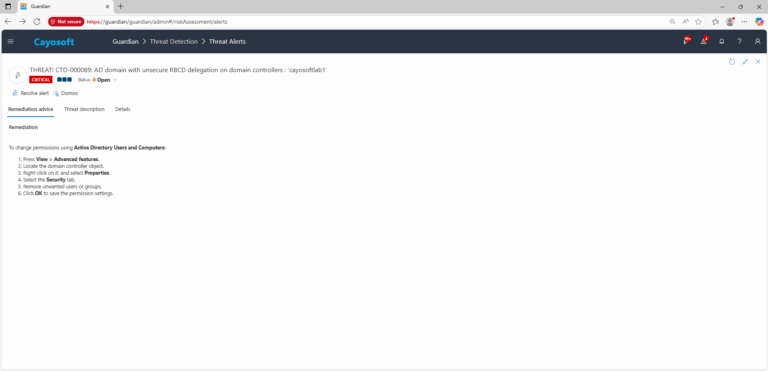 - Use Cayosoft Guardian to continuously monitor delegation settings and receive real-time alerts for misconfigurations.