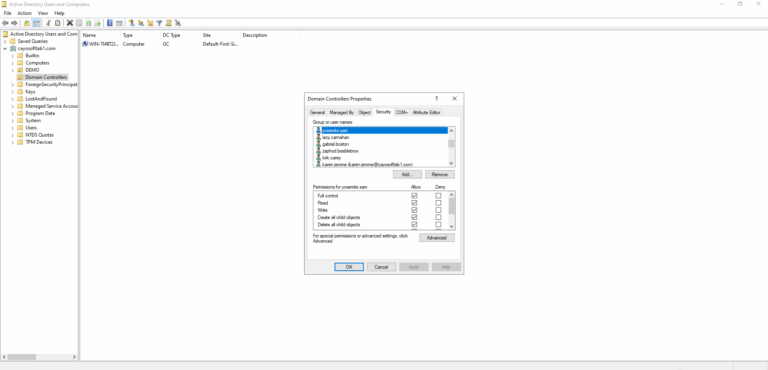 4.) Review the evidence to see which accounts or groups have write permissions to RBCD settings on domain controllers.