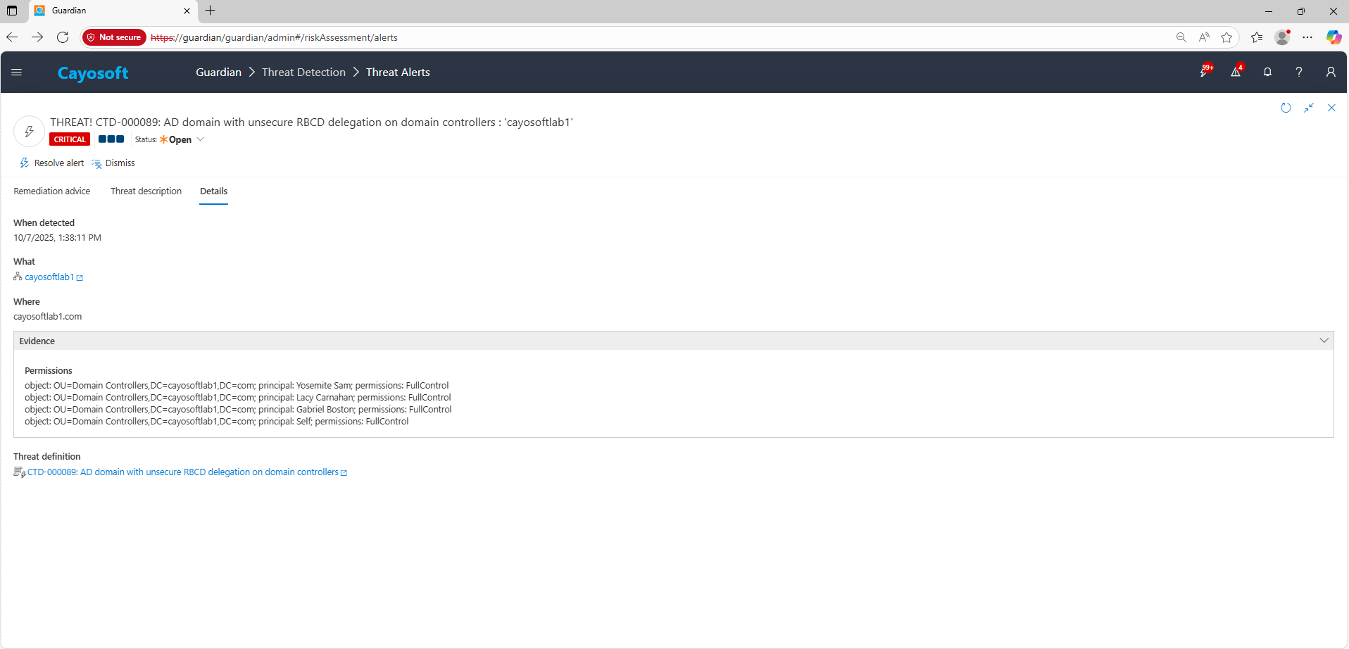 2.) Search for CTD-000089 or AD domain with unsecure RBCD delegation on domain controllers.