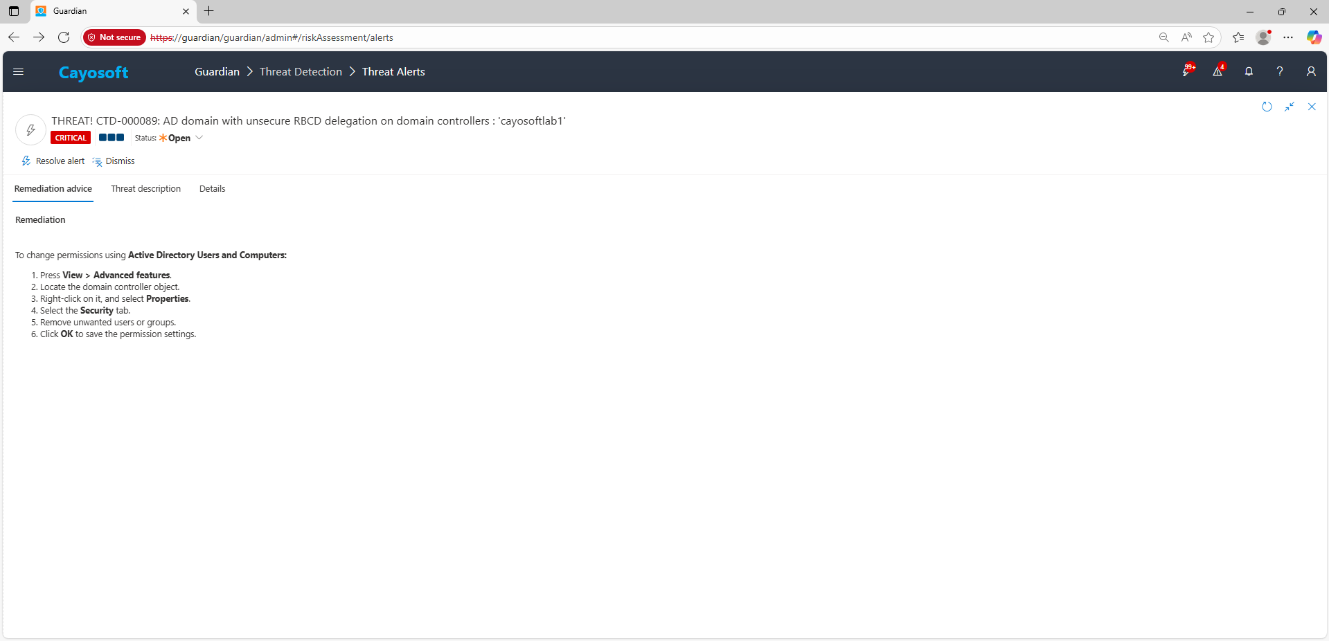 - Use Cayosoft Guardian to continuously monitor delegation settings and receive real-time alerts for misconfigurations.