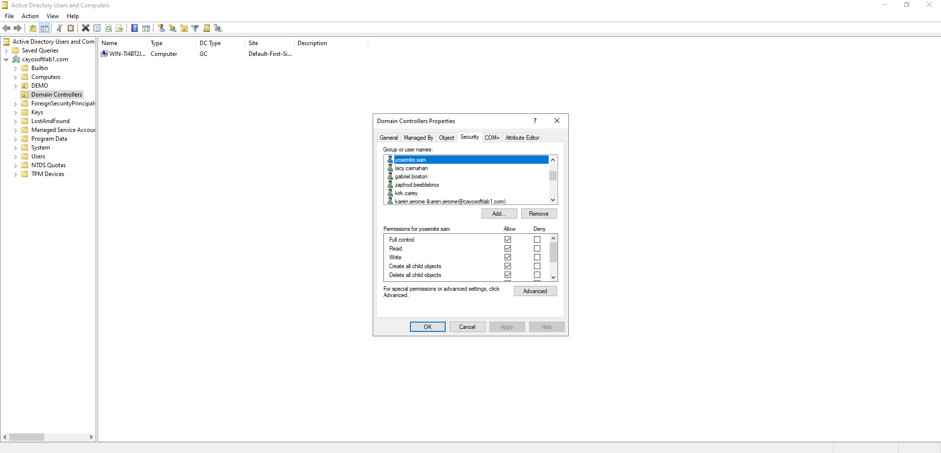 4.) Review the evidence to see which accounts or groups have write permissions to RBCD settings on domain controllers.