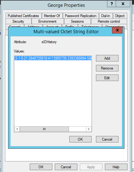A SID (Security Identifier) uniquely identifies security principals in security descriptors and access tokens. Normally, sIDHistory is populated only during migrations.