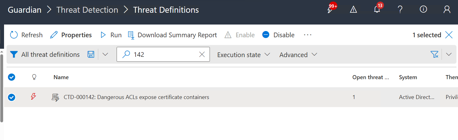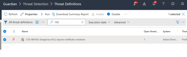 2.) View All Alerts and search for CTD-000142 or Dangerous ACLs expose certificate containers.
