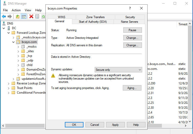 - Expand Forward Lookup Zones or Reverse Lookup Zones.
