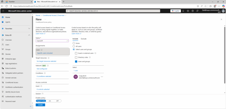 - ) Navigate to Entra ID > Security > Conditional Access to create a Conditional Access policy: