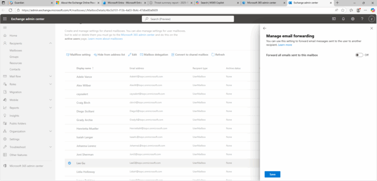 Cayosoft Guardian can proactively detect and alert on Exchange Online mailbox with SMTP forwarding address. It continuously monitors Active Directory, Entra ID, Microsoft 365, and Intune for over 200 misconfigurations, providing early warning before attackers can exploit them.