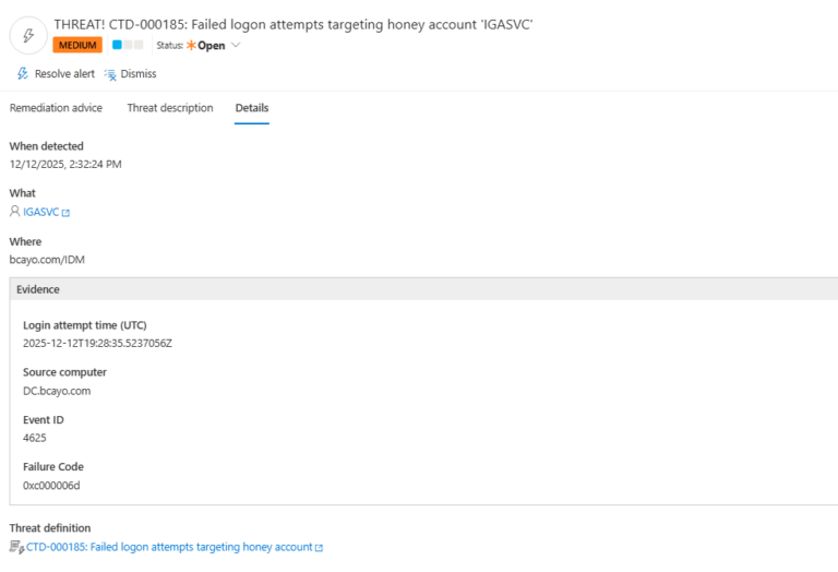 Proactive monitoring and timely remediation of configuration risks is essential to maintaining a secure Active Directory and Microsoft 365 environment. By addressing issues like Failed logon attempts targeting honey account, you reduce attack surfaces and strengthen your organization’s overall security posture.