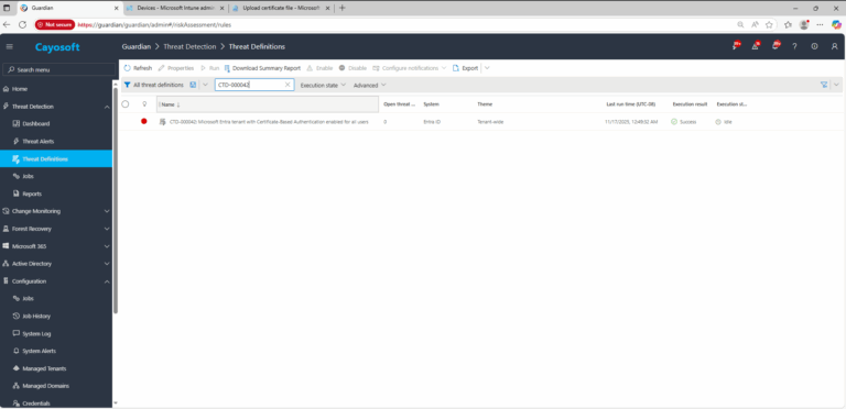 Proactive monitoring and timely remediation of configuration risks is essential to maintaining a secure Active Directory and Microsoft 365 environment. By addressing issues like Microsoft Entra tenant with Certificate-Based Authentication enabled for all users, you reduce attack surfaces and strengthen your organization’s overall security posture.