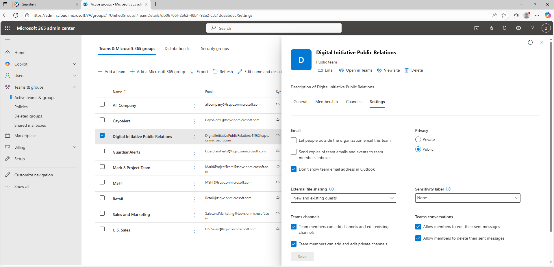- Apply naming and sensitivity label policies that discourage public exposure for sensitive teams.