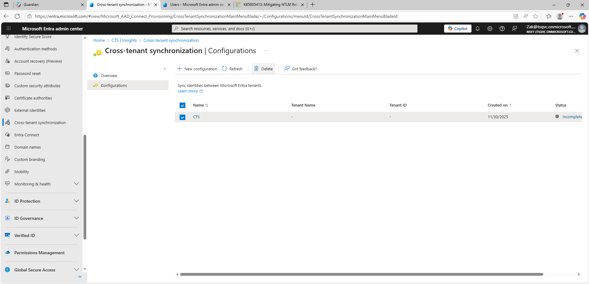 Review changes in the configuration of cross-tenant synchronization.