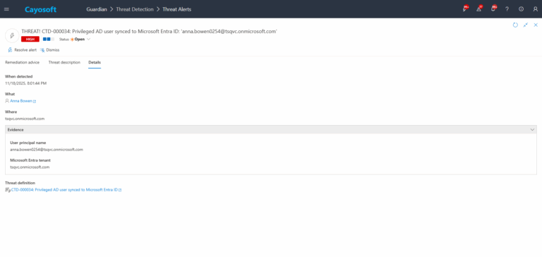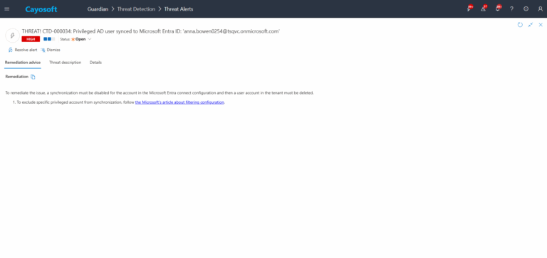 Yes. Cayosoft Guardian continuously monitors AD, Entra ID, Microsoft 365, and Intune, alerts on misconfigurations like privileged AD users being synced, and provides prescriptive remediation guidance.