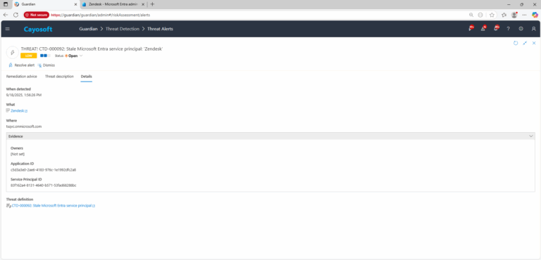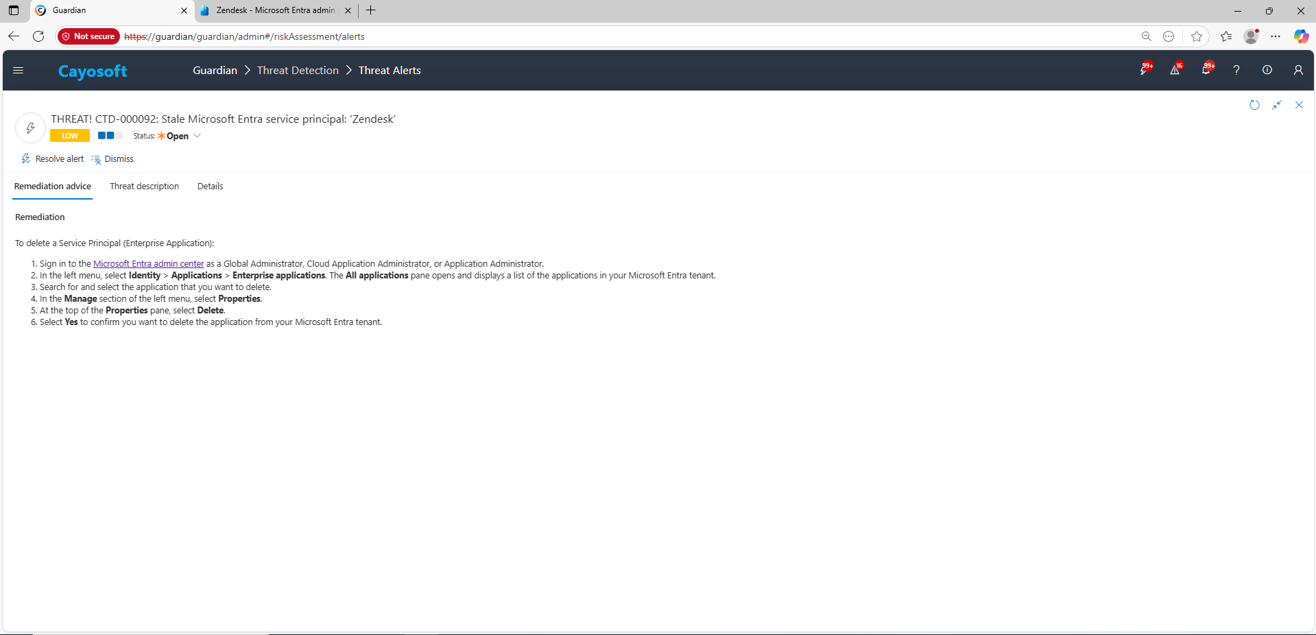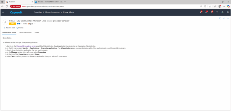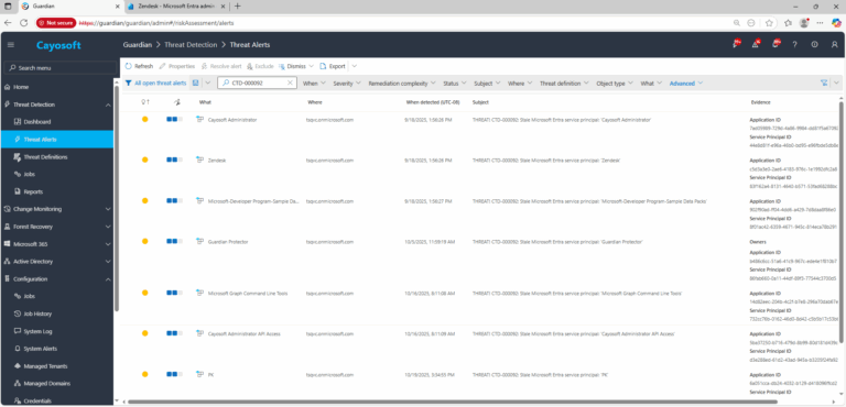 Cayosoft Guardian can proactively detect and alert on Stale Microsoft Entra service principal. It continuously monitors Active Directory, Entra ID, Microsoft 365, and Intune for over 200 misconfigurations, providing early warning before attackers can exploit them.